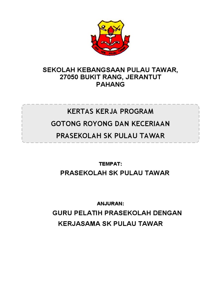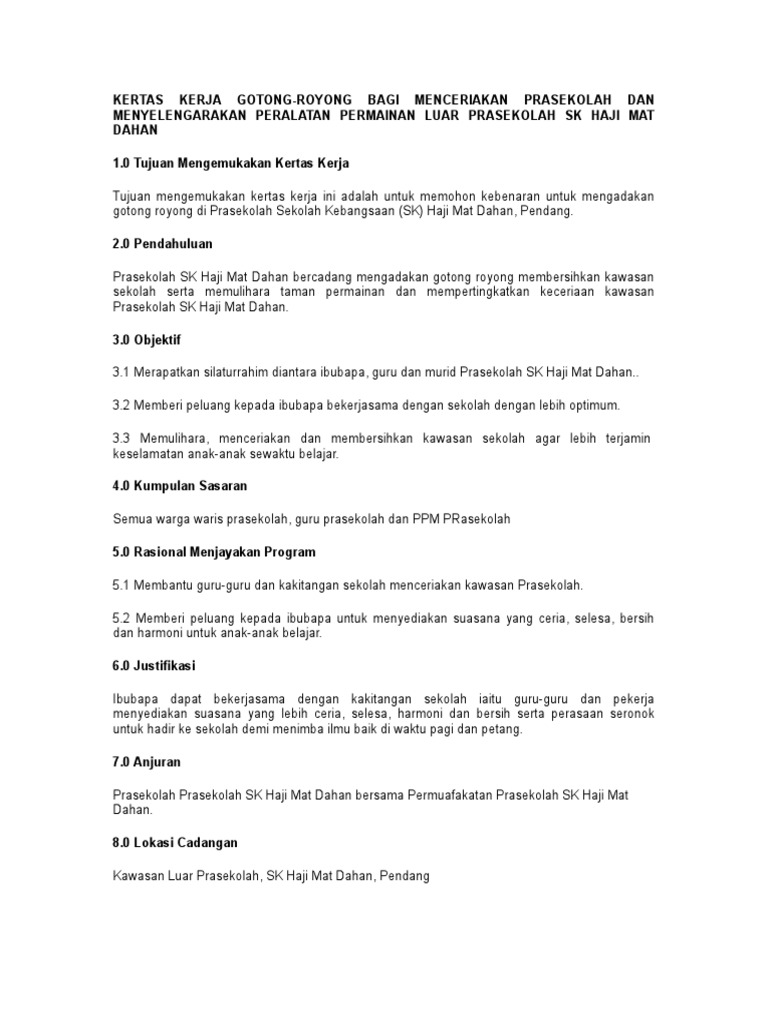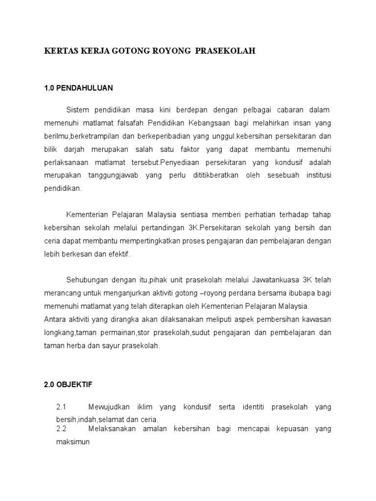 Contoh Kertas Kerja Gotong Royong Prasekolah